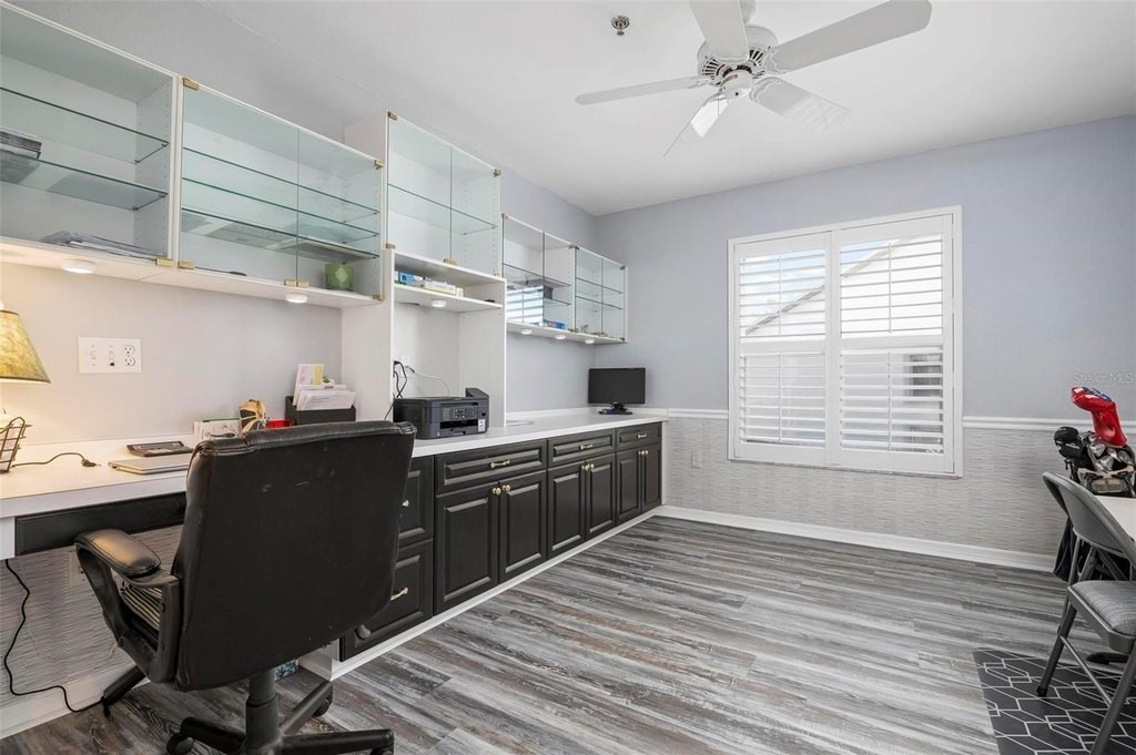 Attention Golfersand those that just want a terrific condo on a golf course! This beautiful 2 Bedroom/2 Bath plus Den end unit overlooks the 6th green at Tara Golf & Country Club. Vaulted ceilings in the living, dining, and kitchen add a feeling of spaciousness and light. A front entry porch with vinyl sliders, and a lanai with glass sliders overlooking the golf course add to the feeling of a much larger condo than 1345 sq, ft. This charming condo has been updated over the past 2 plus years to include luxury vinyl flooring in the main areas, attractive carpet in the bedrooms, no popcorn ceilings, and freshly painted rooms. The kitchen which opens to the main living areas has views of the course, tile floors, corian counters, new backsplash, new refrigerator, disposal, faucets, closet pantry, and a casual eat in area looking out to the front porch. Primary bedroom has a wall of decorative molding which is inviting, Plantation shutters, and opens to the lanai. Both bathrooms have been updated with painted cabinets, quartz counters, new sink, faucets, and the guest bathroom with wallpaper that you will fall in love with. Double pocketing doors off the main area lead to the den with built-ins on one wall, and Plantation shutters. This delightful condo comes with a Class A equity golf membership to Tara Golf & CC, and their 18 hole championship course, fitness center, Clubhouse with fine dining, grill room, pool, tennis courts. Living in Tara is a lifestyle of many social activities and golf events, plus located in the Bradenton/Sarasota area where you will have beautiful beaches, great restaurants, shopping, culture and the arts.